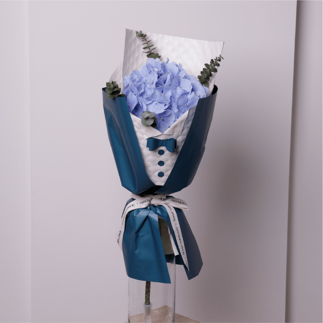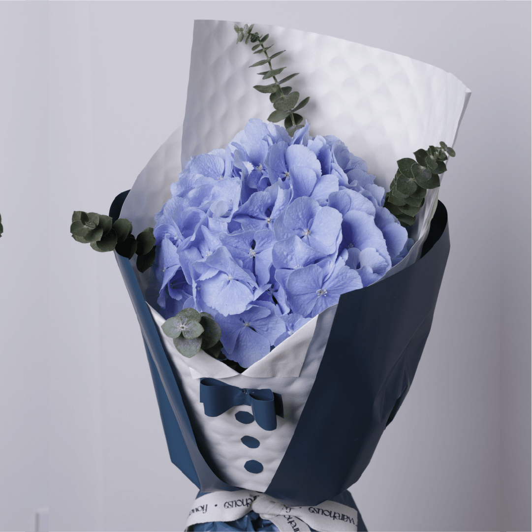 تدرجات الأزرق الناعمة ولمسات بيضاء هادئة، تنقل هذه الباقة إحساس البحر ونسيمه المنعش